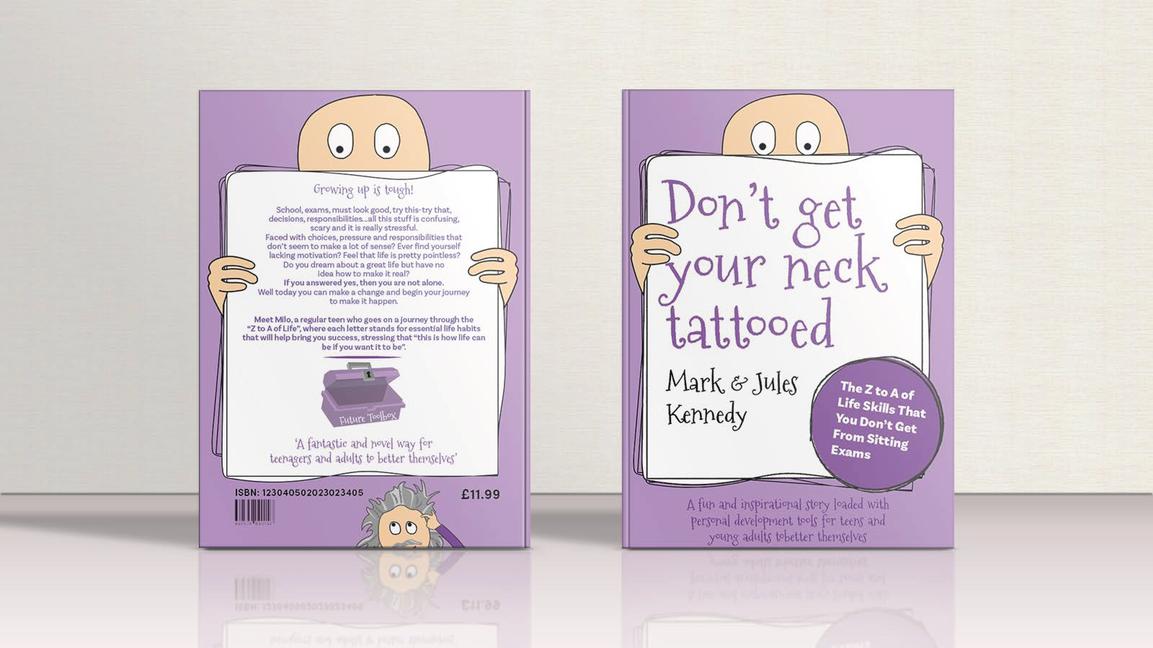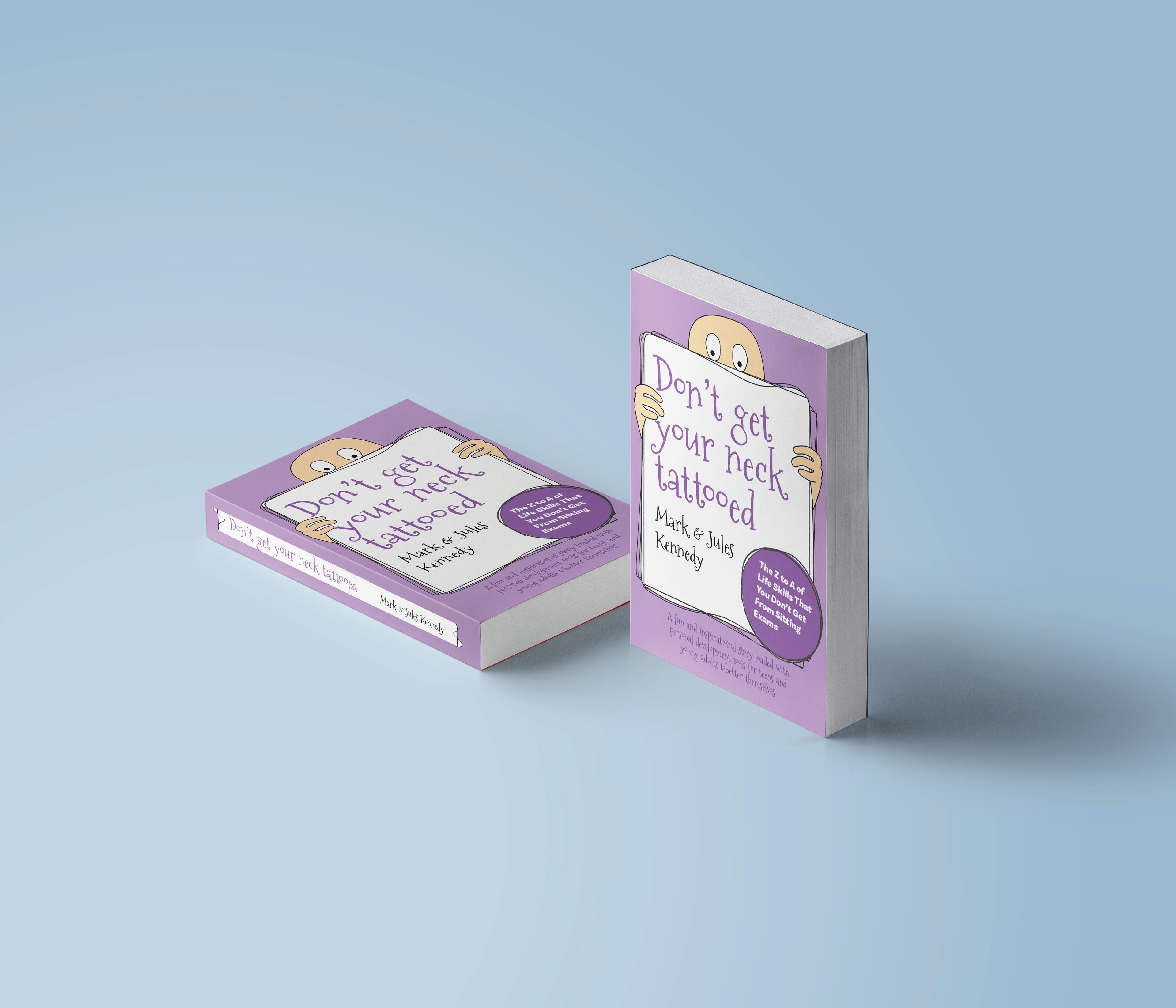 A book cover for 'Don't Get Your Neck Tattooed' By Mark and Jules Kennedy of Future Toolbox. A self-help book aimed at teens and adults to improve their lives through achievable goals.